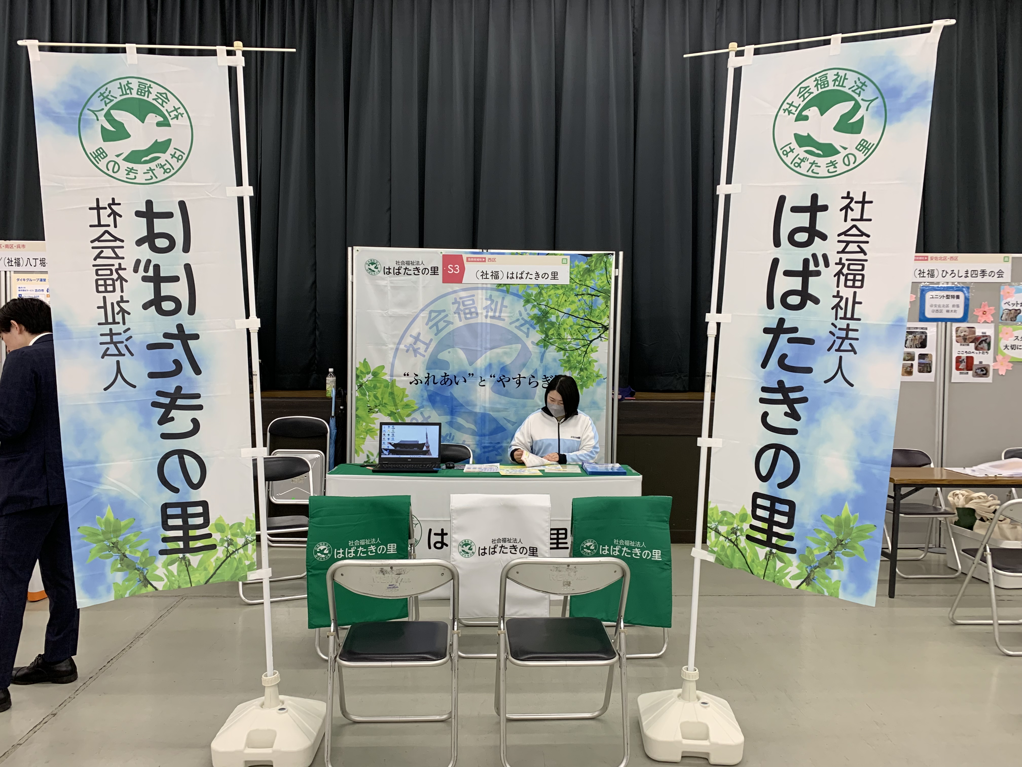 今日は、広島県社協が主催の「福祉の就職総合フェア(春季)」に出展してまいりました
