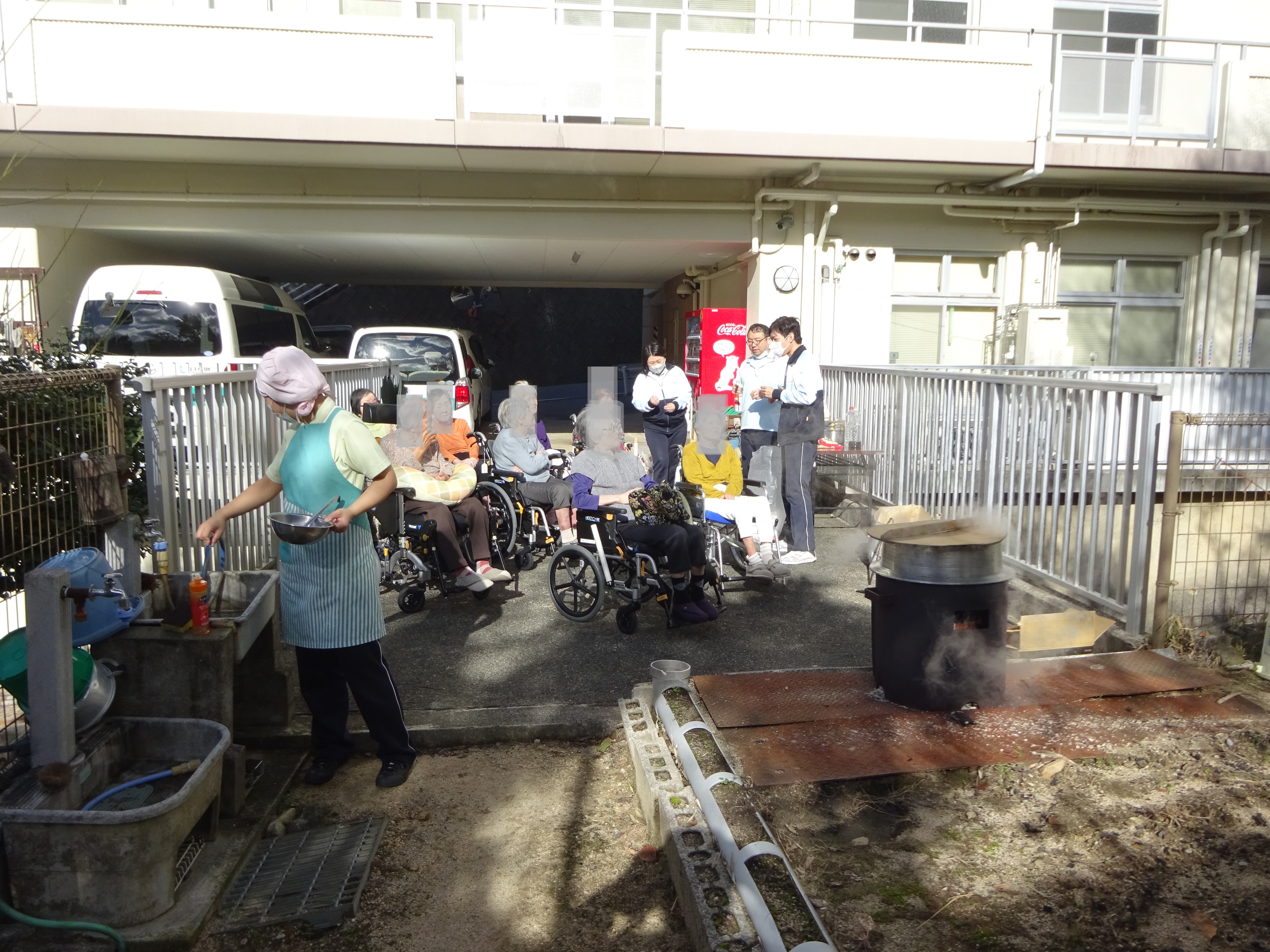 お天気も良かったので、日向ぼっこを兼ねて見学に下りてきました出来た芋煮は昼食時に振舞われます